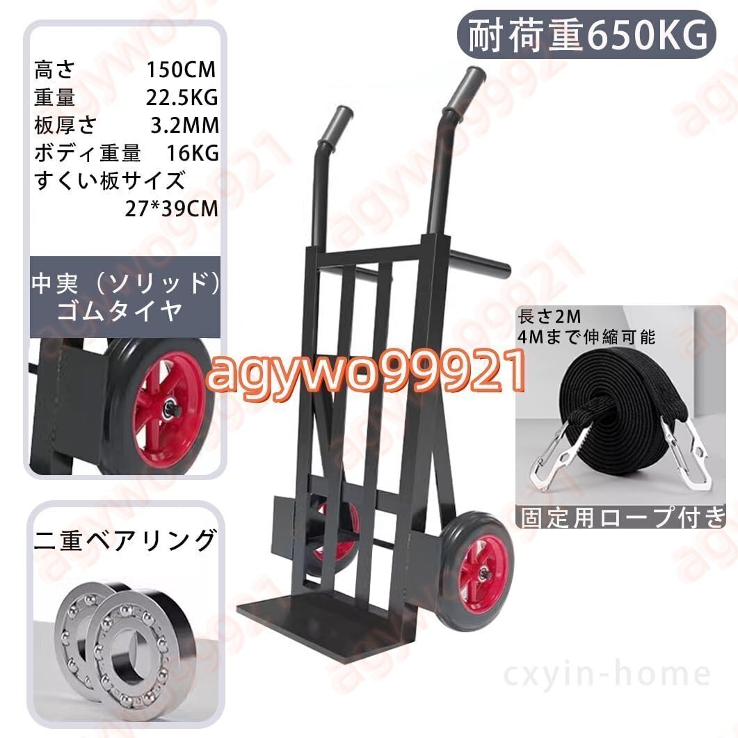 【製品の詳細】質量:約22.5kg。ボディ質量:約16kg。全長:約150cm。荷台寸法:約27×39cm。耐荷重:約650kg。タイヤ:14インチの中実(ソリッド)ゴムタイヤ。タイプ:アングル。 【重荷運搬も楽々】最大限耐荷重を持つキャリーカートは650KGに至るので、ボトルウォーター、
