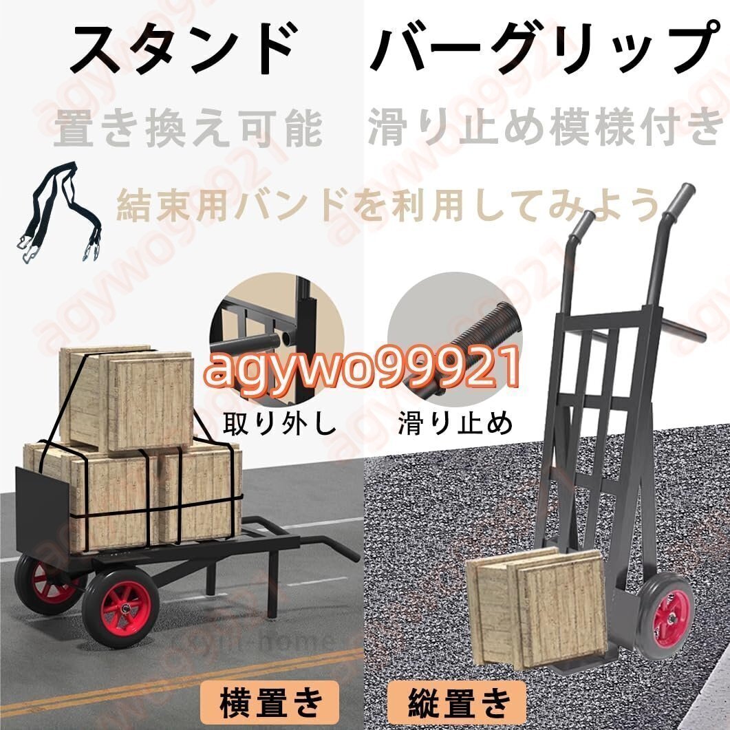 【取り外しスタンド付き】普通のキャリーカートと比べ、取り外し置き換え可能のスタンドがあるので、使用する際、二つの方式で置くことができます。スタンドを取り付けて、カートは横に置き、貨物を運搬する際、少々の休憩できます。