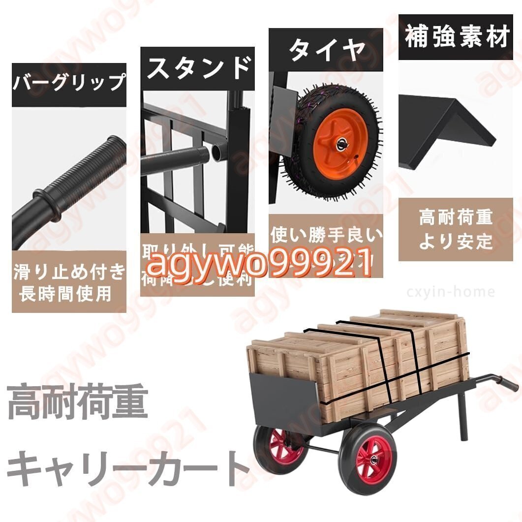【重荷運搬も楽々】最大限耐荷重を持つキャリーカートは650KGに至るので、ボトルウォーター、荷物から、冷蔵庫などの家具に至るまで、重い物に対応できます。工事現場の資材運び、農園の収穫物集め、市場の商品移動、家庭の引越し…あらゆる運搬作業を効率化できます。