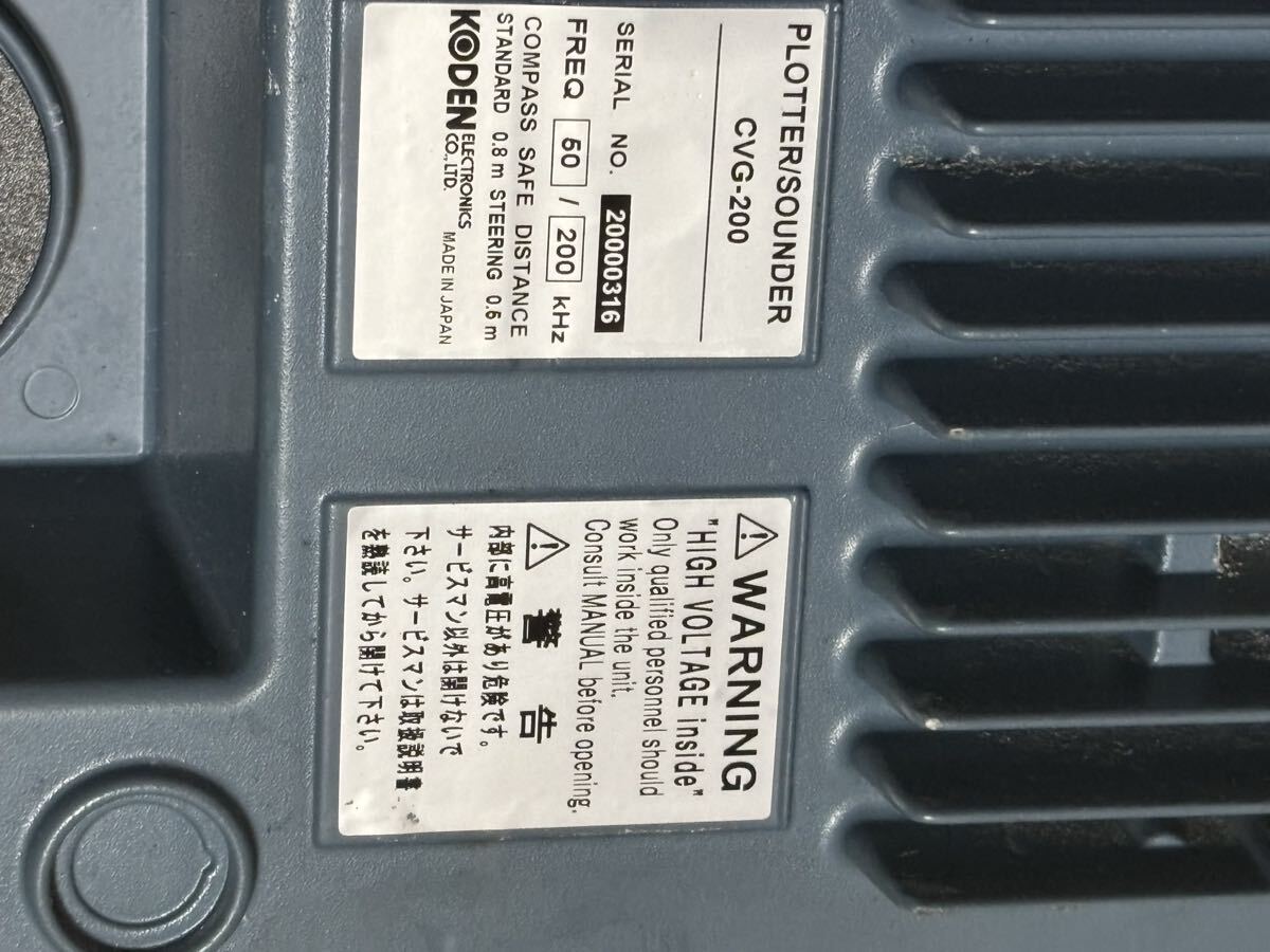 中古船を購入した時についてました。コーデンのGPS魚探CVG-200です。付属品はアンテナと電源コードです。振動子はなしです。