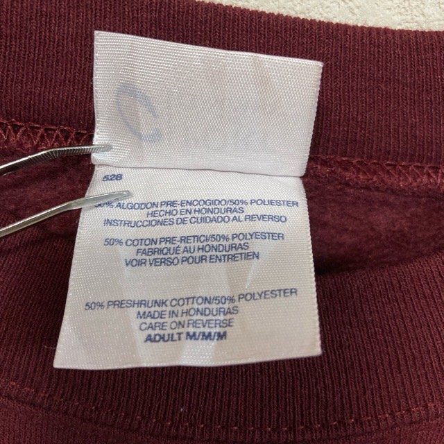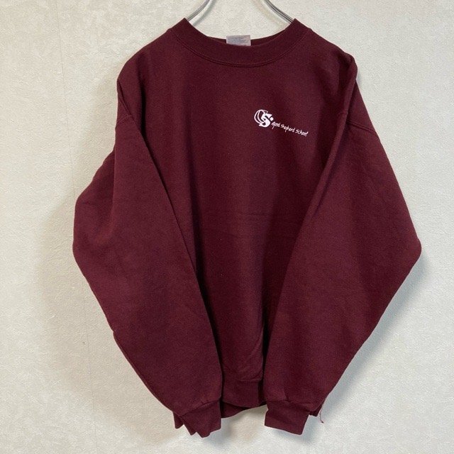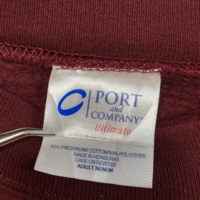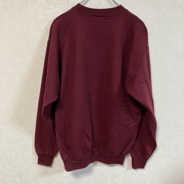 B459 ポートアンドカンパニー M アメリカ古着 プリント スウェット トレーナー バーガンディ Port & Company メンズ