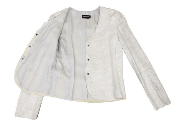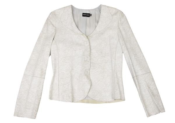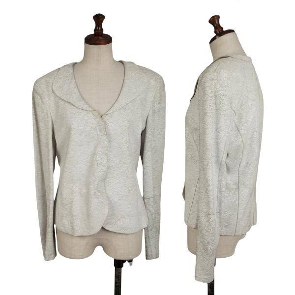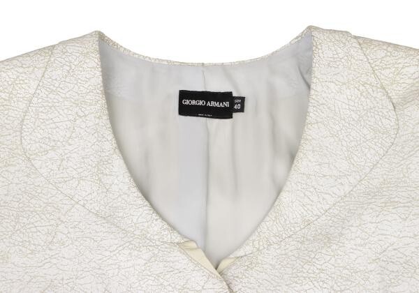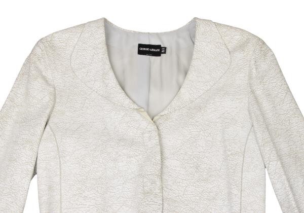 | ジョルジオ アルマーニGIORGIO ARMANI クラックレザー丸襟ジャケット 白40 |