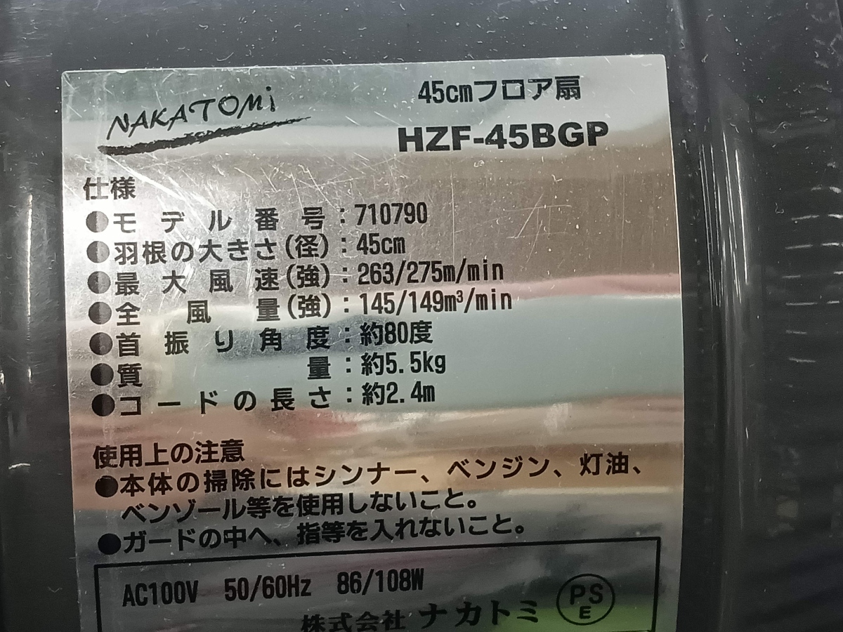| 【 中古 美品 NAKATOMi ナカトミ 45cm フロア扇 HZF-45BGP 】 | |