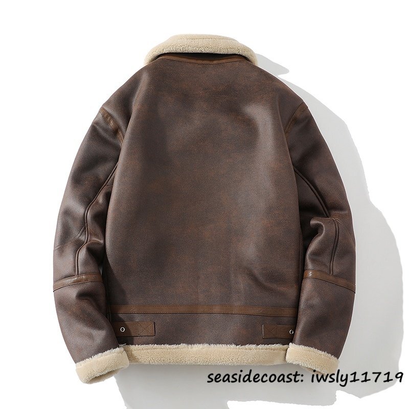 定価12万超◆レザージャケット メンズ 最高級 ムートンコート 裏起毛 防寒 厚手 ライダース 革ジャン 秋冬 フライトジャケット 毛皮 XL