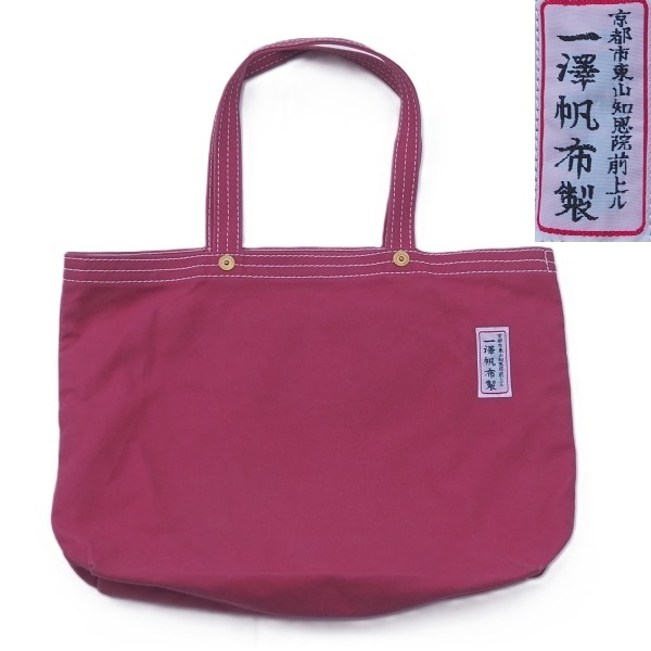 美品 一澤帆布 トート バッグ 朱色 キャンバス