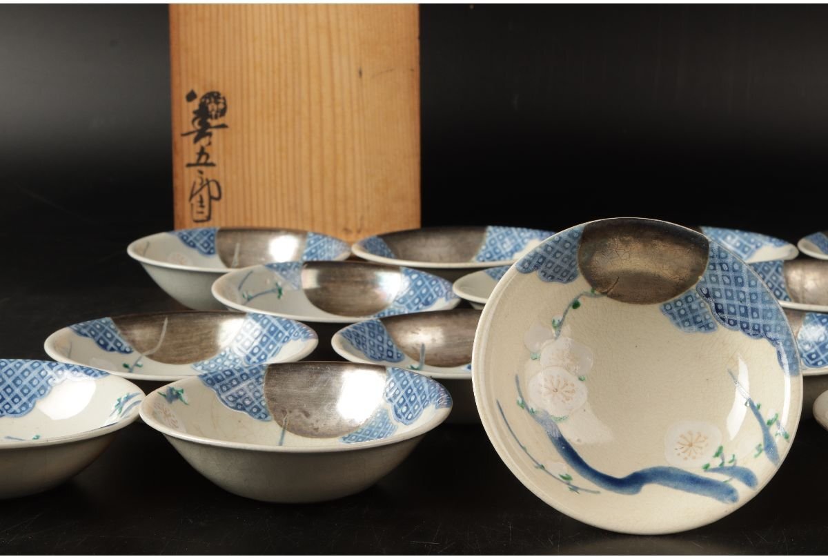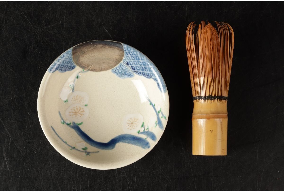 共箱。 経年によるスレ、汚れ、小傷等ございます。 7客に窯傷がございます。 6客に埃跡がございます。 5客に入がございます。 箱に割れ、シール等ございます。 茶筅はサイズ比較の為、付属いたしません。 (詳しくは写真にてご確認の上ご判断下さい) |