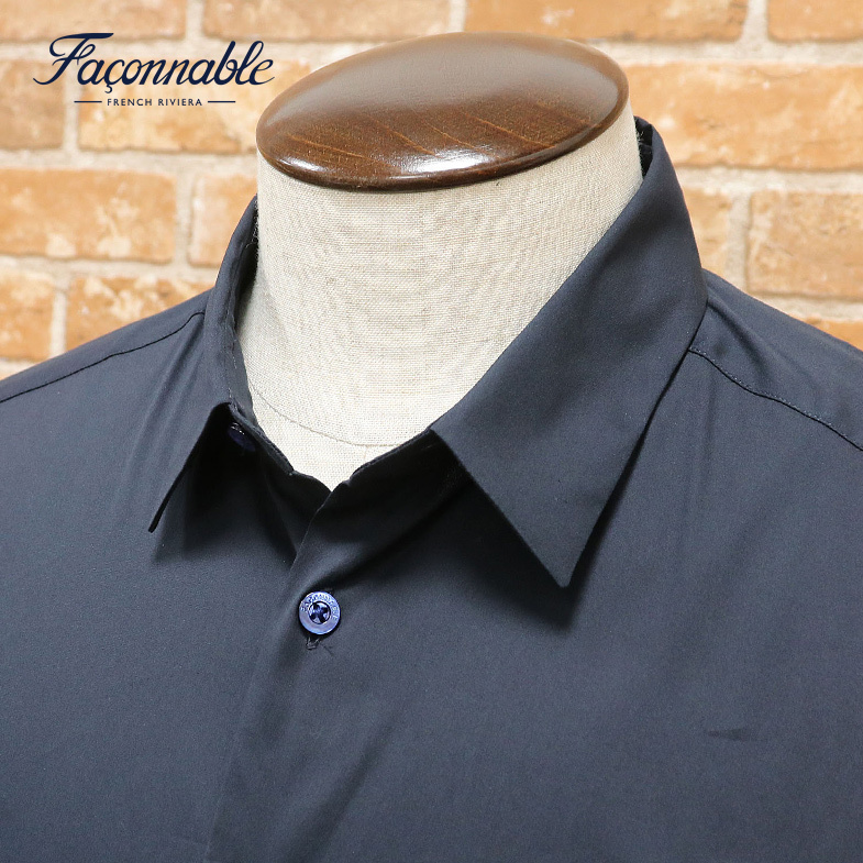 1円/Faconnable/42cm/ドレス シャツ ブロード ストレッチ 無地 シンプル 万能 きれいめ 長袖 新品/紺/ネイビー/me155/