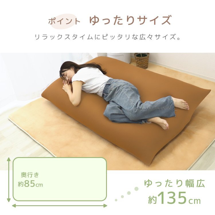 そんなお悩みを抱えたあなた!!! 老若男女問わず、さらにはワンちゃん、ネコちゃんまで 虜にしてしまう…一度座ると手放せないビーズクッションが登場です! たっぷりのビーズと伸縮性のある生地が体にフィットします! ソファーとは違う包み込まれるような感触で長時間の使用でも疲れにくい★ 135cmの特大ビーズクッション。 色んな体勢や使い方をしてもしっかりとした安定感! どんな姿勢にも体がフィットしてくれるので、一度座ると立ち上がれなくなる心地よさです。 カバーは洗濯機で洗濯が可能! ビーズの調整・補充は可能です! 【商品仕様】 カラー:ネイビー サイズ:(約)横幅135cm×奥行き85cm (約)3.5kg 素材:ポリエステル、ポリウレタン、ポリスチレン ※流動性のある商品です。 ※ビーズクッション本体は洗えません。必ず専用カバーを付けてご使用ください。 測り方によりサイズが表記と異なる場合がございます。 |