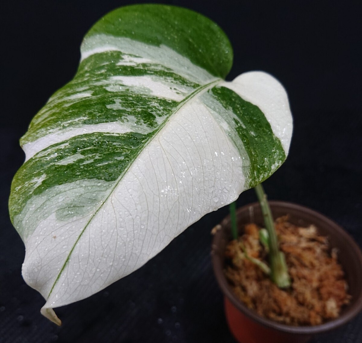 6 最上級斑入り脇芽グングン成長中♪ 発根済み! 極上♪ 斑入り モンステラ ボルシギアナ ホワイトタイガー 極斑入り ハーフムーン 散り斑