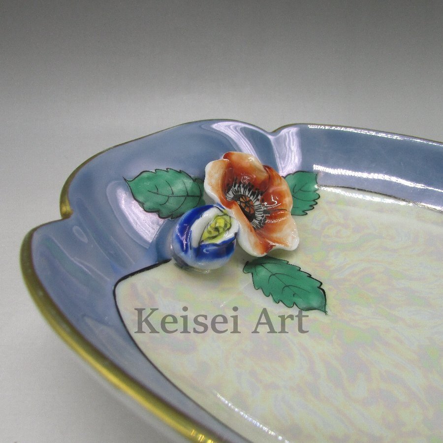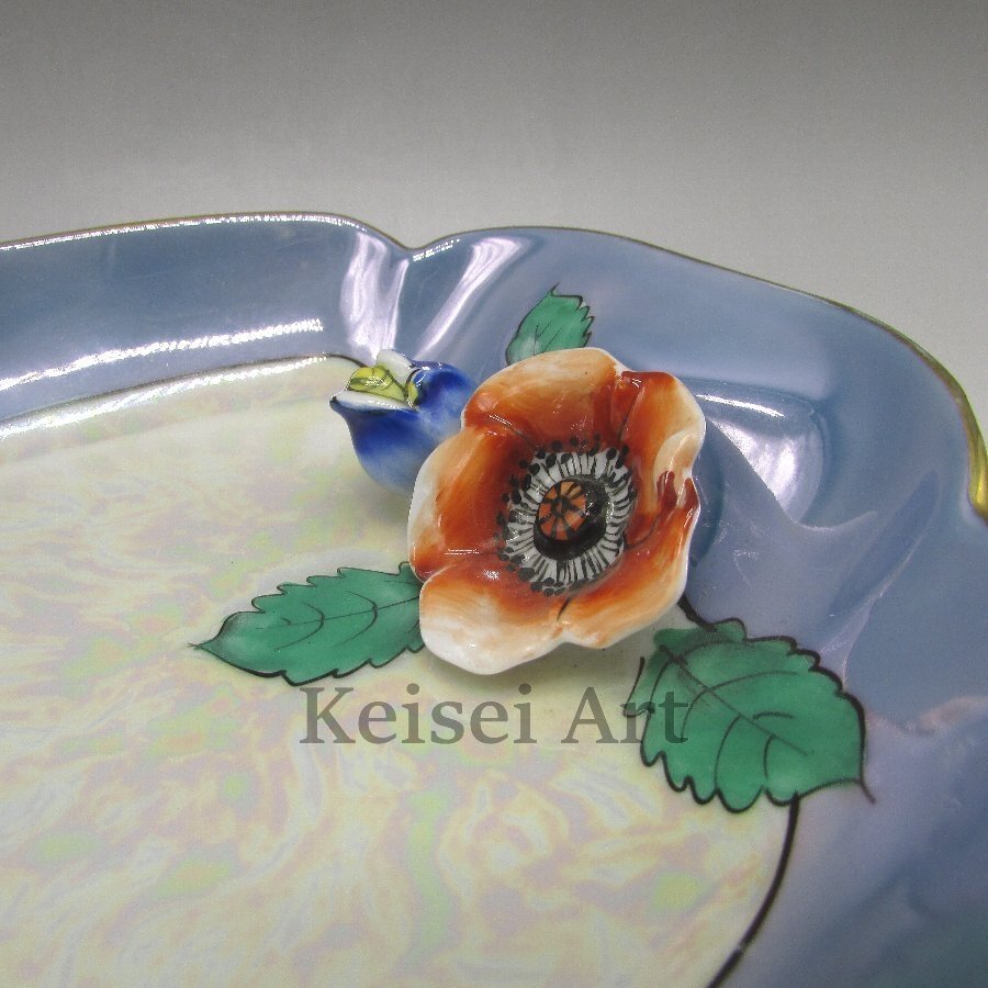 名称 : オールドノリタケ 赤青花フィギュア付ボウル