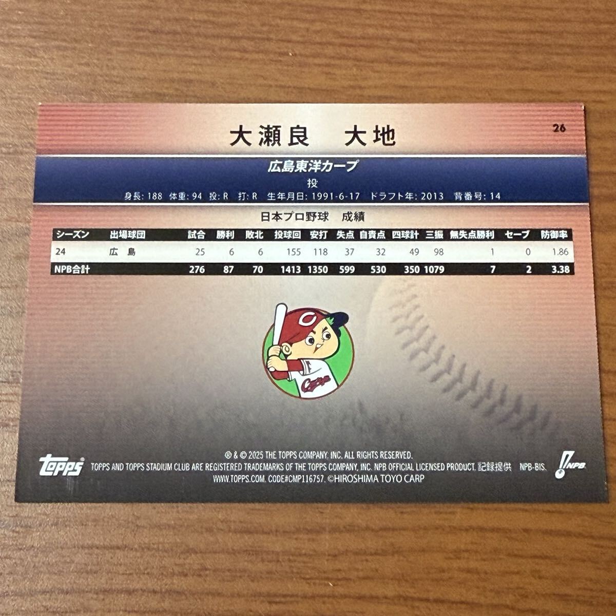 topps stadium club NPB 2025 広島東洋カープ 大瀬良大地 ベースカード 26