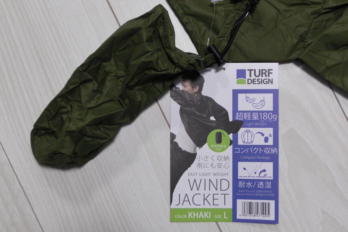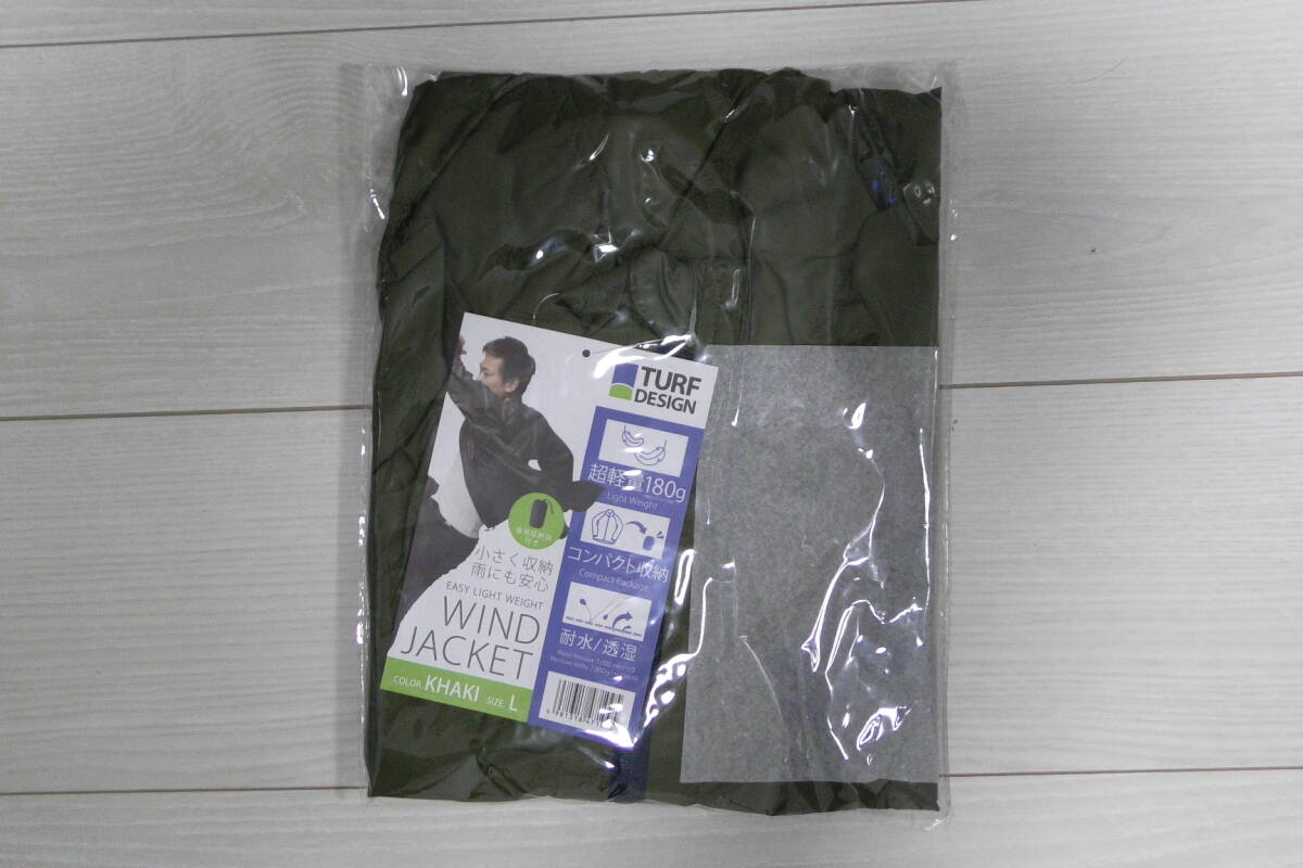 新品 送料無料 ターフデザイン メンズ ウィンドジャケット ゴルフウェア カーキ L 超軽量 コンパクト収納 TURF DESIG 雨具 カッパ