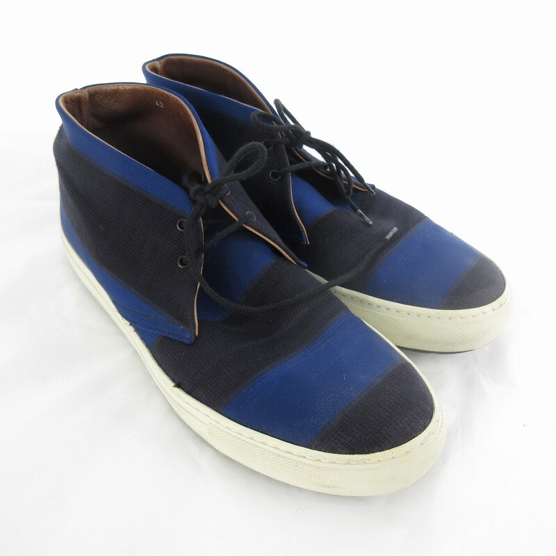 アクネ ストゥディオズ Acne Studios スニーカー ハイカット シューズ ボーダー ネイビー ブルー キャンバス 42 約27cm 靴 メンズ
