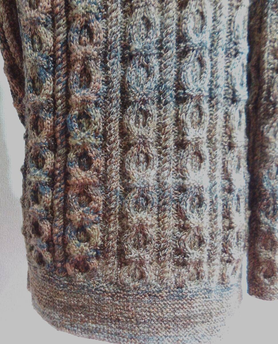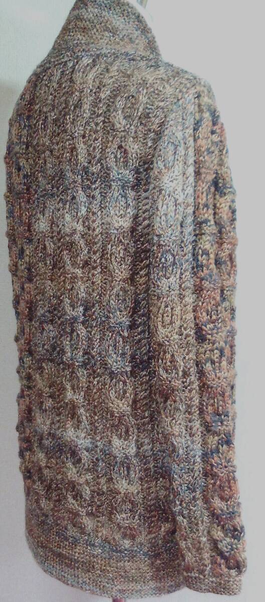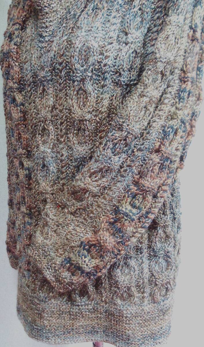 襟・裾を・袖口をガーターで仕上げ、デザインしています。