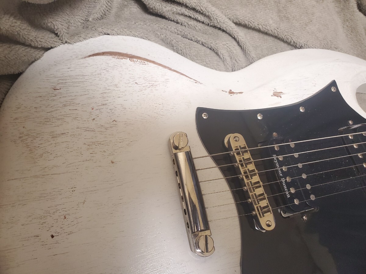 長門有希のSG(Gibson SG special)をモデルにしたフェイテッドホワイトのSGです