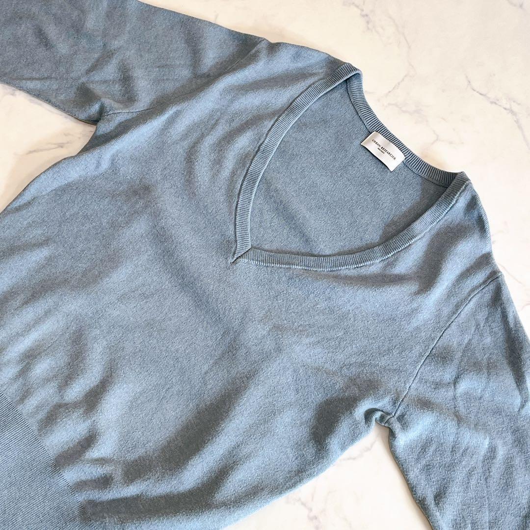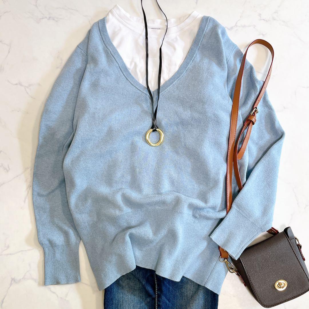 深めVネックなので、中に着るインナーのデザインやカラーで着回しが楽しめます