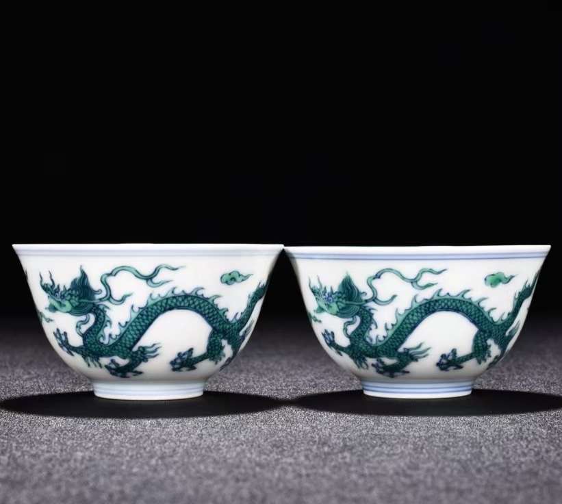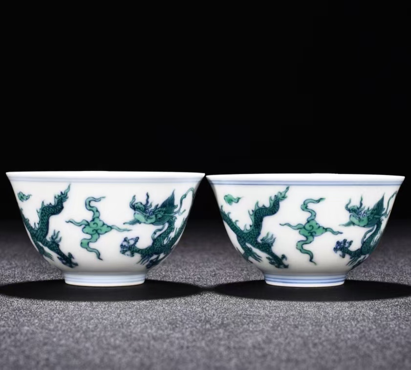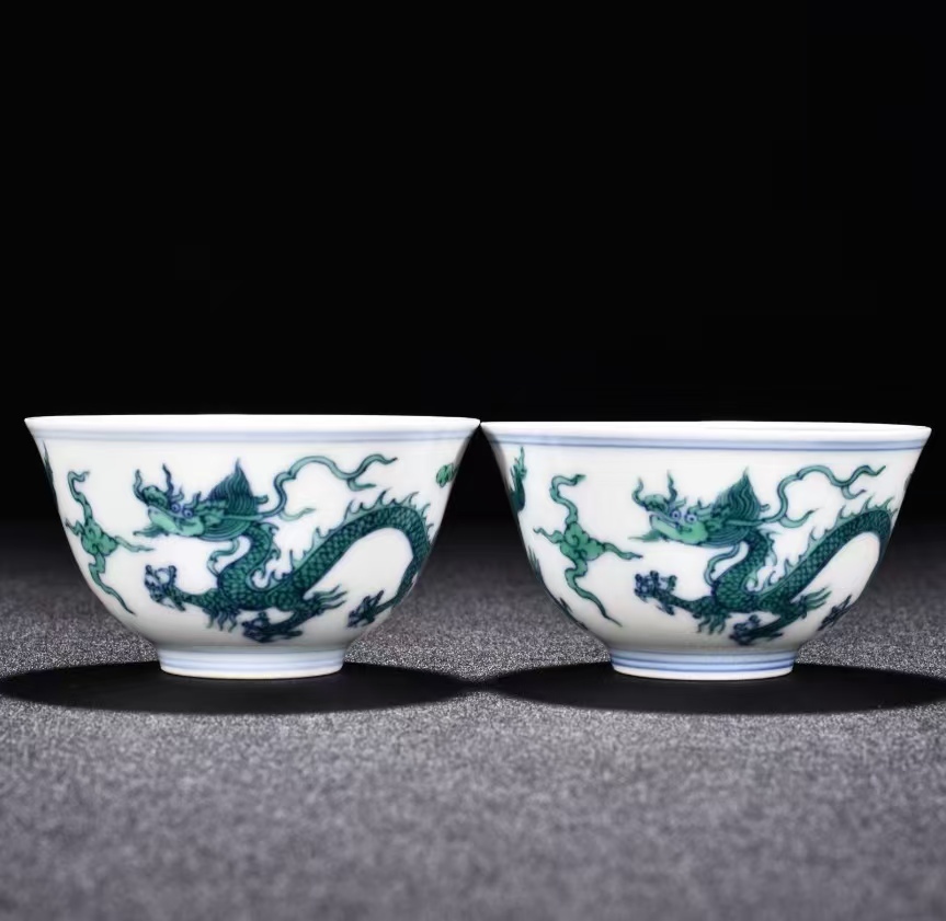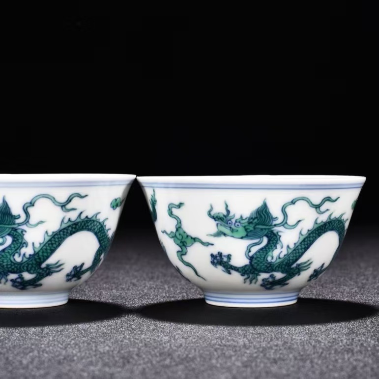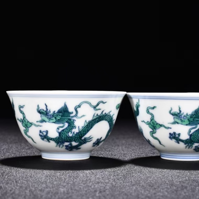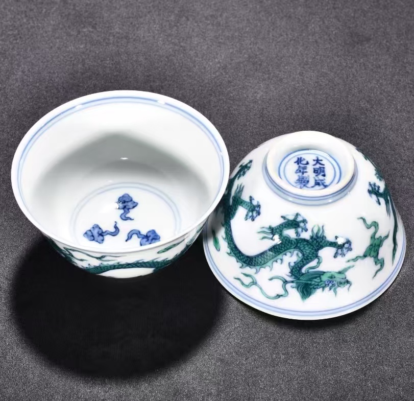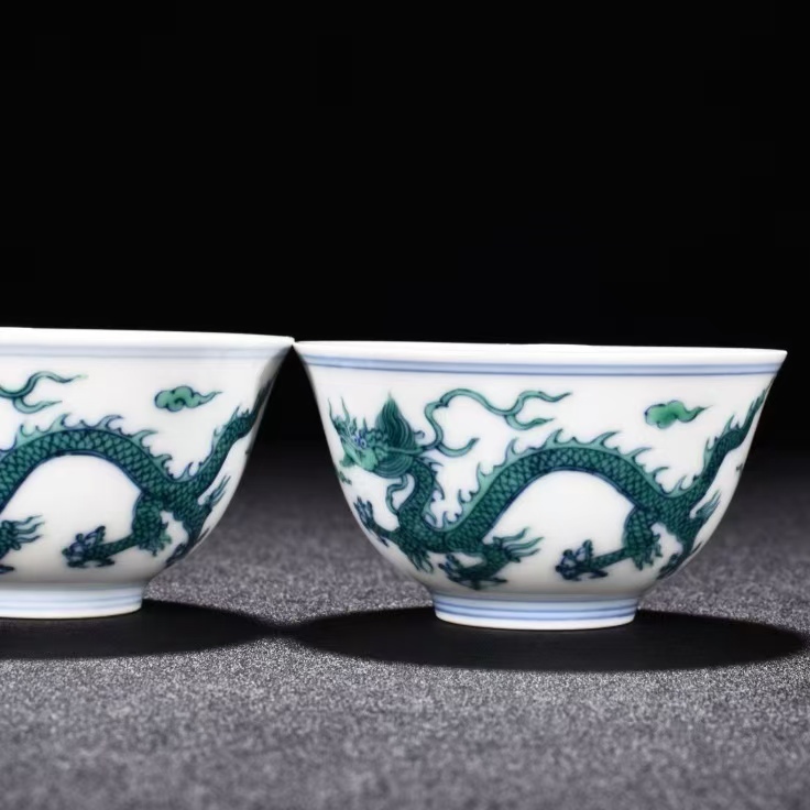 明時代 成化年制 官窯 青花 綠彩雲龍紋杯 茶盞 茶杯 杯子 茶道具 茶具 古陶磁器 唐物 古賞物 時代物 骨董品 旧家蔵出し 古美術品 古置物