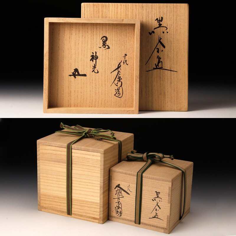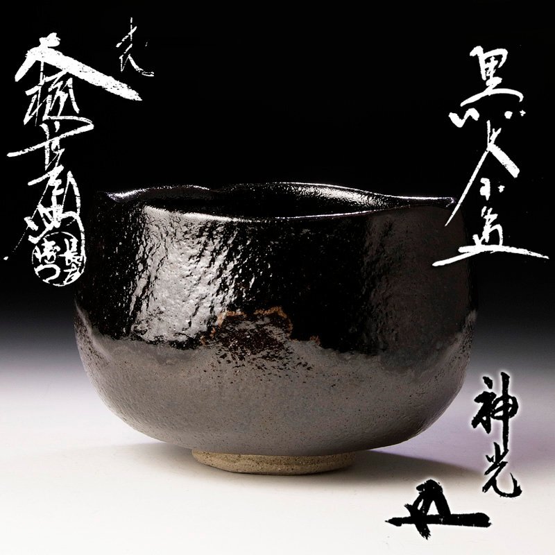 | 【古美味】十代大樋長左衛門『鵬雲斎書付』黒茶碗 銘:神光 茶道具 保証品 |