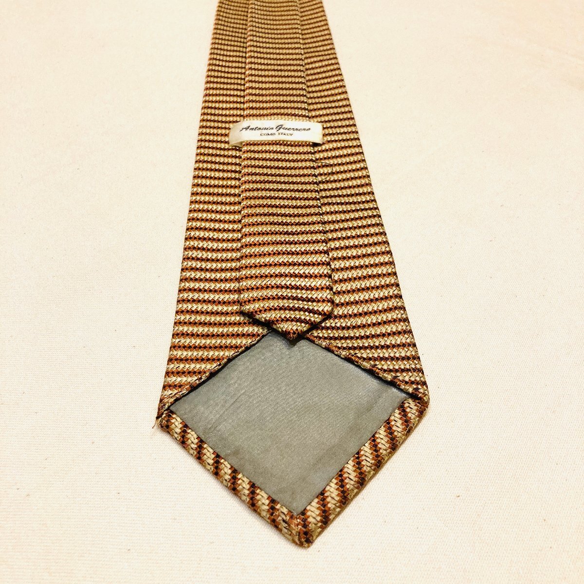 美品 Antonio Guerrero 絹 シルク SILK 100% ネクタイ ゴールド/ブラウン系