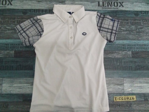 FIDRA レディース 袖チェック切替 半袖ポロシャツ M 白 です。