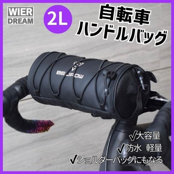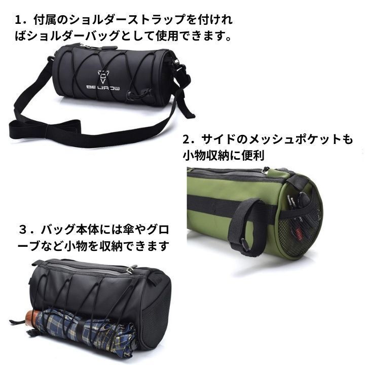 自転車フロントバッグ 防水 ハンドルバーバッグ マウンテンバイク用 ショルダー ブラック 携帯