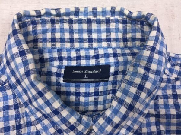 スマートスタンダード トップバリュ Smart Standard TOPVALU ギンガムチェック 長袖ドレスシャツ メンズ ボタンダウン L 青