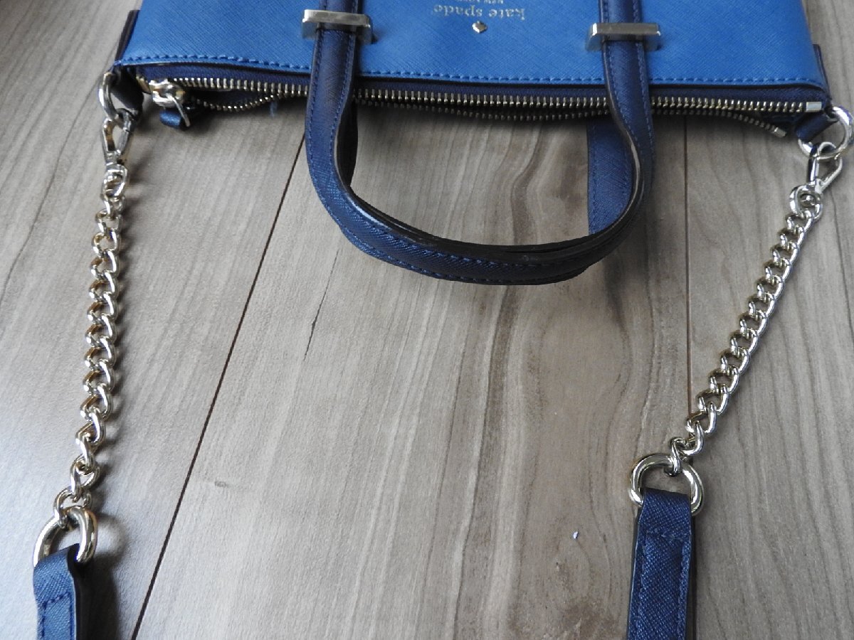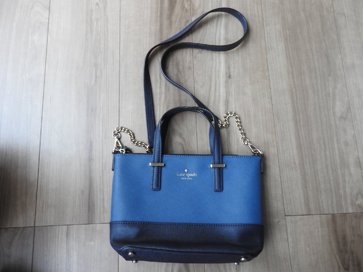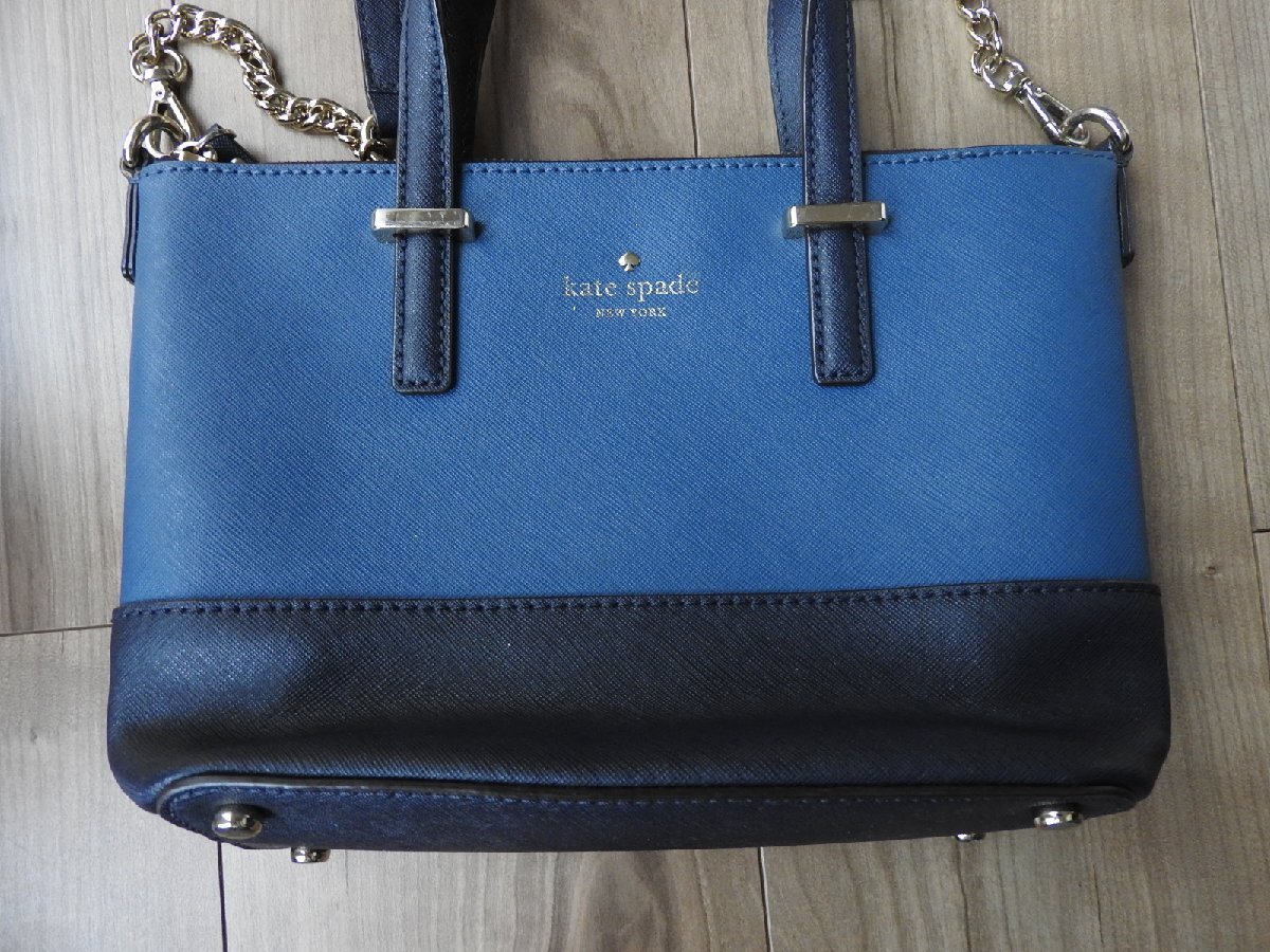 kate spade ケイトスペード ネイビーブルー系 ブラック レザー ハンドバッグ ショルダー付  になります。