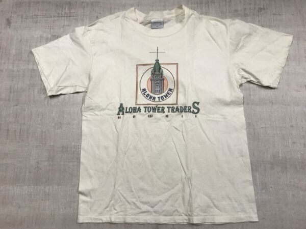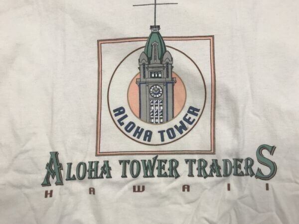 Custom Company製 USA製 ALOHA TOWER TRADERS ハワイ HAWAII スーベニア アメカジ オールド 90s 古着 半袖Tシャツ カットソー メンズ M 白 です。