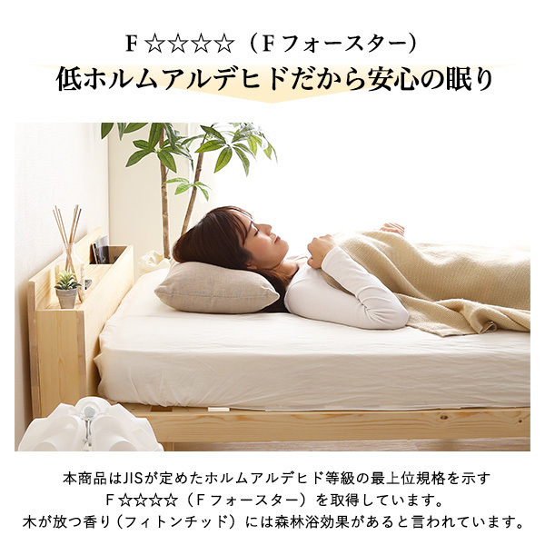 【ポイント】 お好みに合わせて3段階に高さを調節できる宮セット脚付きベッドです。 北欧産パインフレームを使用した、通気性と耐久性に優れた頑丈設計です。 やさしい無垢材のナチュラル、爽やかなホワイトアッシュ、シックなブラウンの3色がございます。 低ホルムアルデヒド仕様で、F★★★★(フォースター)獲得!お子様にも安心です。 |