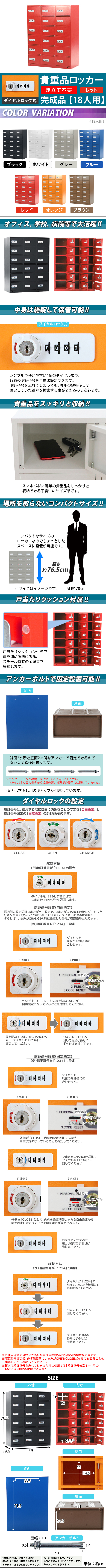 | 商品名 | 送料無料 ロッカー 貴重品ロッカー おしゃれ 18人用 完成品 ダイヤル錠 スチールロッカー ダイヤルロック ダイヤル式 暗証番号検索キー付き 3列6段 スチール製 貴重品 収納 オフィス 事務所 会社 ロッカー スリム 鍵付き かぎ付き 十八人用 18枚扉 f2018wpl |