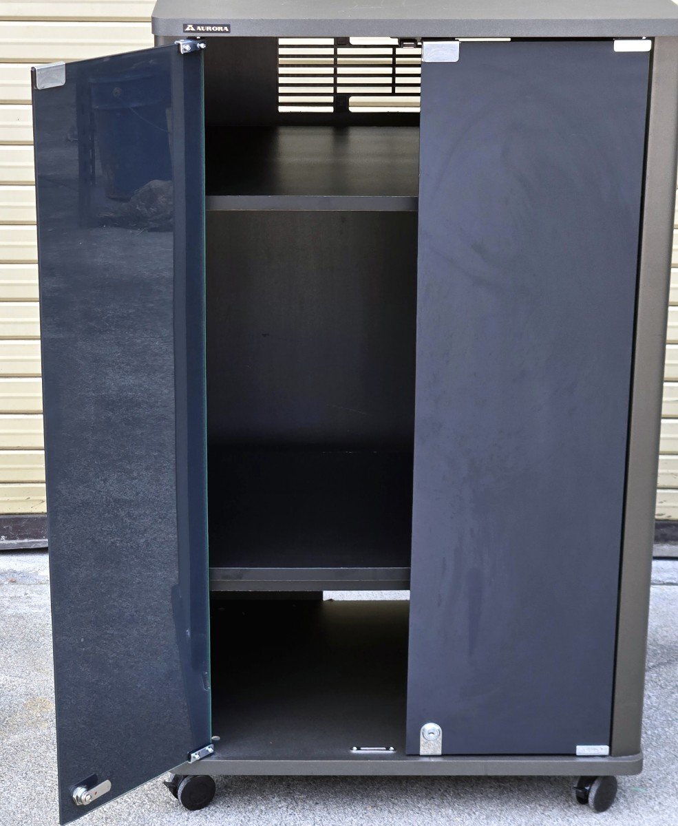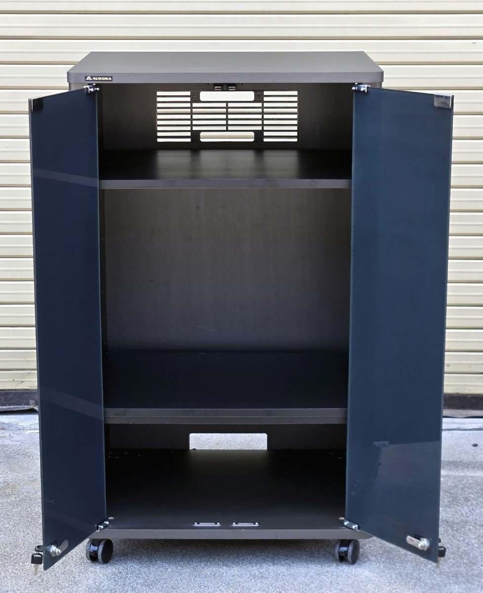 | ▼商品名 | 共栄商事 AURORA オーロラ 高級木製テーブル おそらくVB-1000 鍵4本付 AVラック プロジェクター台 セキュリティーラック 2013年製 |