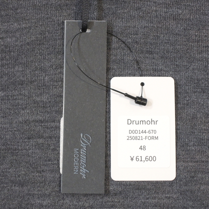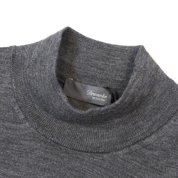 「Drumohr MODERN」ラインは、“4シーズン着られるニット”をコンセプトに極上のファインメリノウール素材を採用したモダンで洗練されたニットコレクションです。 ここ数年タートルネックを凌ぐ人気を見せているモックネック。高さ5cmのネックはスタイリングに秋冬らしい暖かそうなウォーム感を与えるうえ、タートルネックの首元の締めつけ感が苦手な方でも取り入れやすい着やすさが魅力です。 繊細な30GGのハイゲージニットは高級感に溢れ、スタイリングに端正で上品な印象をもたらしてくれます。 無駄をそぎ落としたベーシックなデザインはコーディネートしやすく、時代を問わず長く着用する事ができ、様々なシーンで活躍する万能な一枚に仕上がっています。 素材は生地メーカーと共同開発したスーパー140'sのスーパーファインメリノウールを使用。 上質な細番手糸ならではの光沢感と独特なヌメり感を併せ持ち、まるでシルクのような滑らかなタッチにラグジュアリーなルックスが特徴です。とろける様に柔らかな肌触りでとてもソフトで体に吸いつくような着心地をもたらしてくれます。 「Drumohr MODERN」はレギュラーコレクションに比べてややタイトなフィッティングとなっており、シルエットはすっきりとしたサイズ感のスリムフィット。短めの着丈や袖丈は日本人の体型に合いやすいバランスとなっており、エレガントでスマートな完成されたシルエットです。 スリムフィットですがニットならではの伸縮性でノーストレスな着心地。起毛感も少なめでコンパクトな造りは、重ね着しやすくジャケットのインナーに合わせる際もとても動きやすいです。 付属品 なし | ||||
