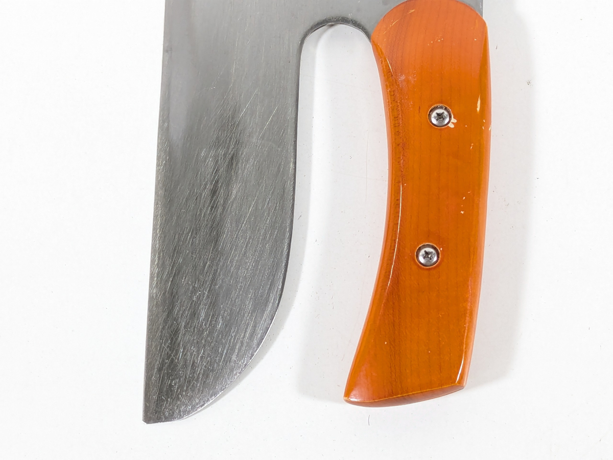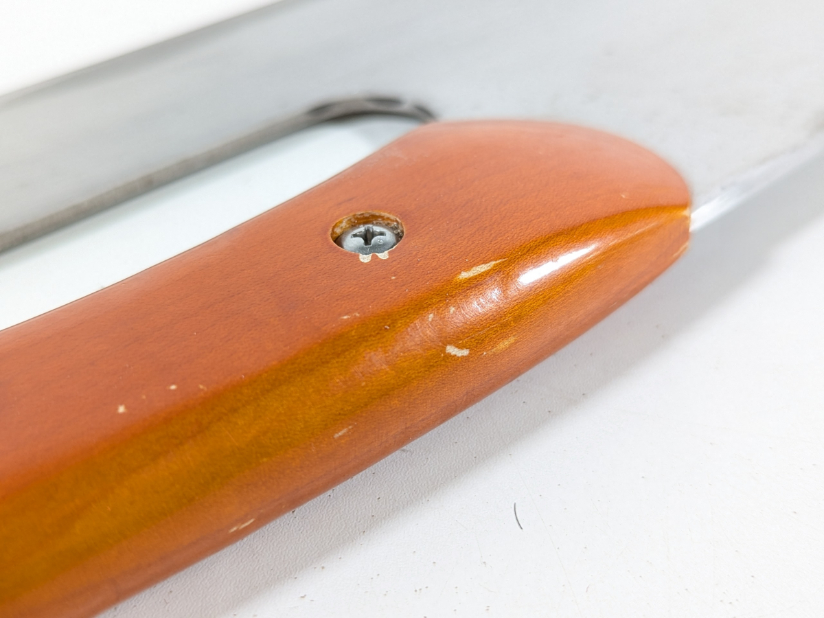 【商品状態】 基本的に中古品の為、スレや傷・汚れなどございます。 多数商品がある場合、傷や汚れを写真に載せきれない可能性もございます。 あらかじめご理解・ご了承の上入札をお願いいたします。 また、細かくクリーニングしている訳ではありませんので 状態を極度に気にされる方、神経質な方は入札をお控えください。 ■写真に写るもののみの販売となります。 写真にないものは付属いたしません。 画像をご確認の上、商品の状態に納得して頂いた方のみ入札をお願いいたします。 【サイズ】 ・刃渡り:約30.5cm ・刃幅:約13cm ・柄の長さ:約16.5cm ・全長:約30cm※素人採寸のため多少の誤差はご容赦ください。 【取引ナビの対応日時】 ■平日9:00-18:00となります。※土日祝日は休業 【発送方法】 発送は佐川急便よりお送りいたします。 原則ご入金後、発送まで3日~7日お時間を頂いております。落札商品の量によって発送までのお時間が前後してしまう可能性があります。商品をお急ぎの方はご注意ください。 ※発送元地域が異なる商品の同梱はできません。 また土日祝日はヤフオクの取引全般をお休みしておりますので発送/連絡はできません。いつ頃発送するのか等の催促はおやめください。 ※沖縄・離島の方は【中継料】が発生し送料が高額になります為、佐川着払いとなります。 ※中継料が発生した場合、追加で中継料分の不足送料を請求させて頂きます。必ずご自身のお住まいをご確認頂いてから入金をお願い致します。 【直接引き取り】 引き取り場所は埼玉県久喜市になります。 詳しいご案内場所は落札後、取引ナビにてご連絡いたします。 受付時間:平日9-18時 ■手順 ① 取引情報の入力 ② yahoo!かんたん決済で支払うをクリック ③ 配送方法を直接引き取り0円を選択し決済を行ってください。 ④ 取引メッセージに 直接引き取り希望と、希望日、希望時間帯をお知らせください。 後程、ご案内の通知をいたします。 【注意事項】 ■発送連絡と同時に評価も入れております。評価不要の方はご落札時にメッセージでお知らせください。 ■商品到着後、破損があった場合は配送業者へ一度ご連絡をお願い致します。 ■発送方法の変更はお受けできません、また送料に納得がいかないままの入札はご遠慮ください。 ■商品到着後7日以上経ってからの返品・返金は対応出来ません。品物が到着次第すぐに商品の状態をご確認ください。 ★他にも沢山の商品を出品しております。 ご興味のある方は、他の商品も是非ご覧下さい。 |