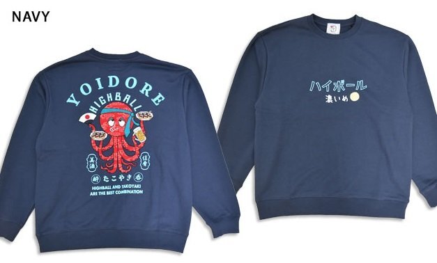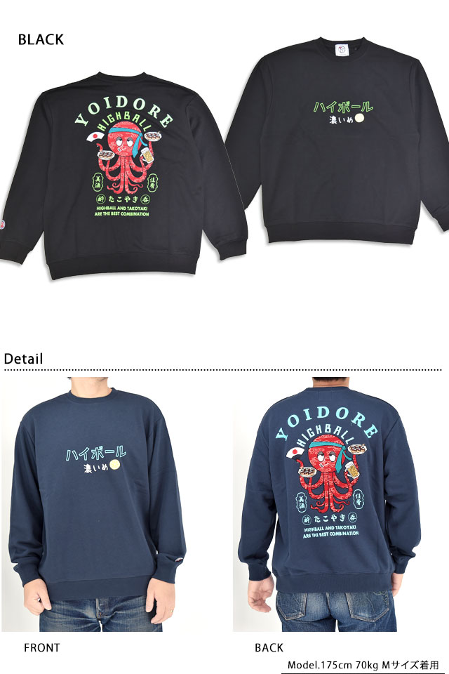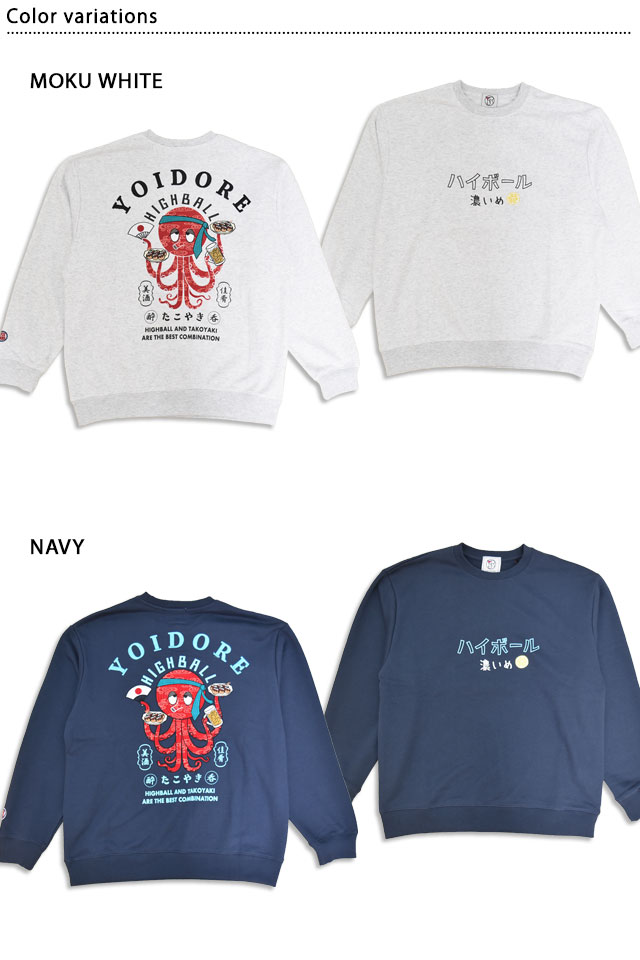| ハイボールとたこ焼きクルーネックスウェット◆YOIDORE YOI-M00812 | ||||||||||||||||||||