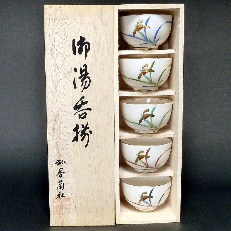 | ID・商品名 | J66-【香蘭社】湯呑み揃 蘭 5客セット 金彩 |