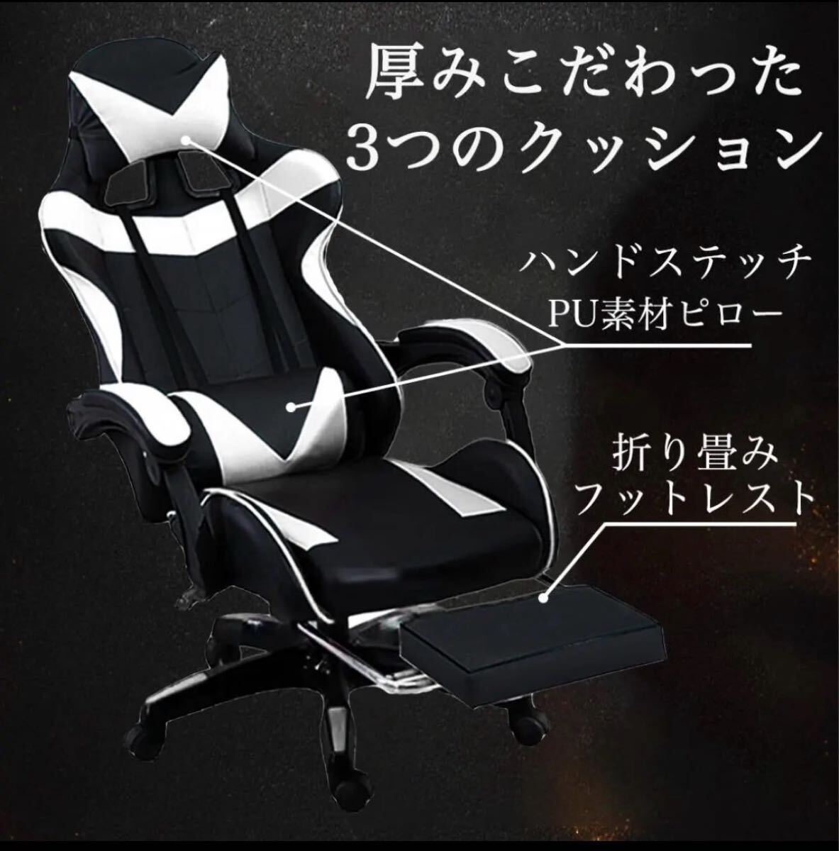 #ゲーミングチェア #ゲーム #リクライニングチェア #オフィスチェア #ハイバックチェア #レーシングチェア #デスクチェア #チェア #椅子 #PCチェア #ヘッドレスト #ランバーサポート #オットマン #社長椅子 #事務所 #オフィス #人気商品 #レザー #PUレザー