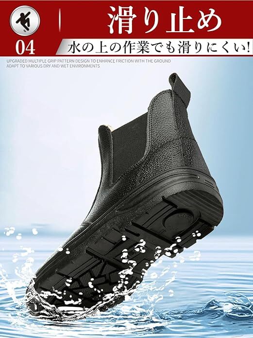 【防水&滑り止め】雨天時の水はねを防ぎながら、水の上での作業でも確かなグリップ力を発揮。悪天候下の作業環境を強力にサポートします。