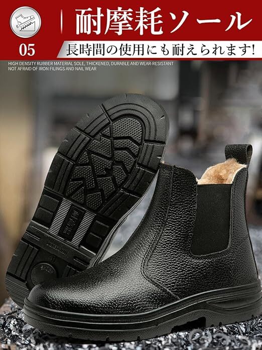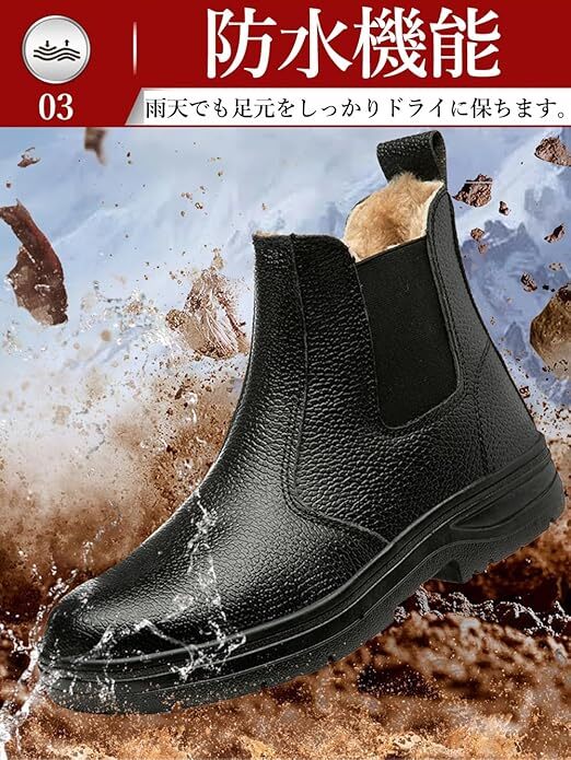 防寒安全靴 裏起毛 作業靴 防水 冷地仕様 ハイカット ボア付き セーフティシューズ 軽量 鋼先芯入り 冬用 作業用 黒 サイズ:27cm