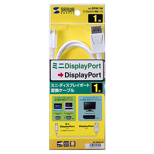 ※配送の送り主はサンワサプライ(株)と記載されています。沖縄・離島配送不可となります。 当店は正規販売代理店です。 特長 ミニDisplayPortとDisplayPortとを接続する変換ケーブルです。 ミニDisplayPort(またはミニDisplayPortと互換性のあるThunderbolt)搭載のMacや各社パソコンと、DisplayPortを持つディスプレイを接続して使用できます。※DisplayPortを搭載の各社パソコンと、ミニDisplayPort(またはミニDisplayPortと互換性のあるThunderbolt)を持つディスプレイを接続しても使用できます。 DisplayPort規格ver.1.2対応です。最大21.6Gbps(1レーン5.4Gbps×4)の伝送速度に対応し、最大3840×2160までの高解像度表示が可能です。 1本のケーブルで画像+音声の伝送が可能です。(音声信号の入出力は機器のオプション機能になっていますので対応した機器どうしが必要です。) 気をつけておりますが、タイミングによっては在庫切れの場合があります。 コンテンツ不正コピーを防止する著作権技術のDPCP(DisplayPort Content Protection)、著作権保護技術HDCP(High-bandwidth Digital Content Protection)に対応しています。 ケーブルの中心から、「アルミシールド(ツイストペアケーブル)アルミシールド高密度編組シールド」と三重のシールド処理を施し、ノイズから大切なデータを守ります。 芯線を2本ずつよりあわせたノイズに強いツイストペア線を使用しています。 サビにも強く、経年変化による信号劣化の心配が少ない金メッキ処理を施したピン(コンタクト)を使用しています。 仕様