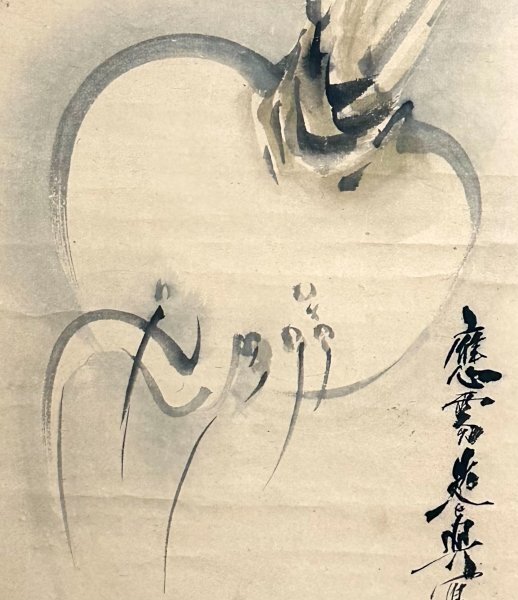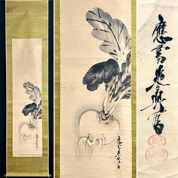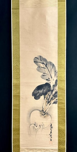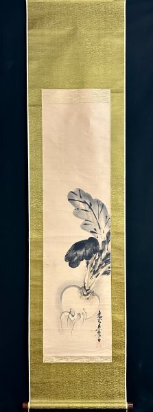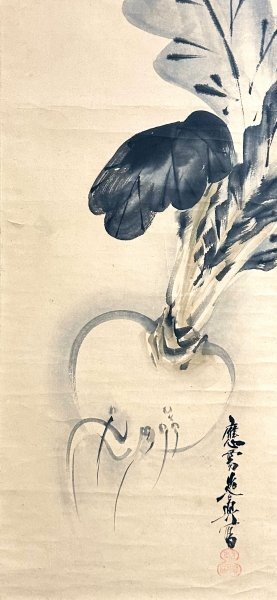 H18H11【真作】柴田是真「水墨根蕪図」掛軸 紙本 肉筆 幕末明治の日本画家 蒔絵工 漆芸家 鈴木南嶺 岡本豊彦に師事 東京の人 合箱