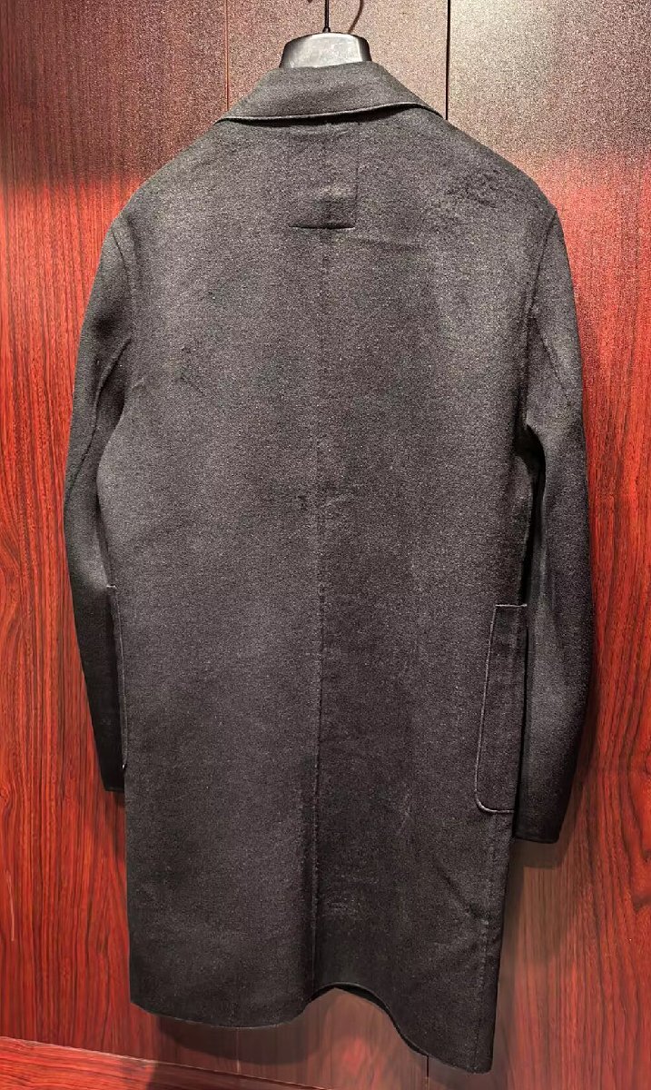 BOLINI発※豪華・両面ウール*イタリアン紳士・チェスターコートです。これは本当に素晴らしい1品。生地は最高級ウールを使用しており、丁寧な作りで、スエード感じのウール生地は高級感が抜群、ヨーロッパ製造・紳士、高級、肉厚の3拍子揃った最高級コート。 大人の域を飛び越えたダンディーでシブい1着 上品なブラックストライプ柄が大人感を出しています。 スタッフ試着でその高級品質を確認しております。落ち着いた黒色はluxuryな雰囲気がユーザー様の魅力を発揮します、ラとにかく ディテールが素晴らしい。