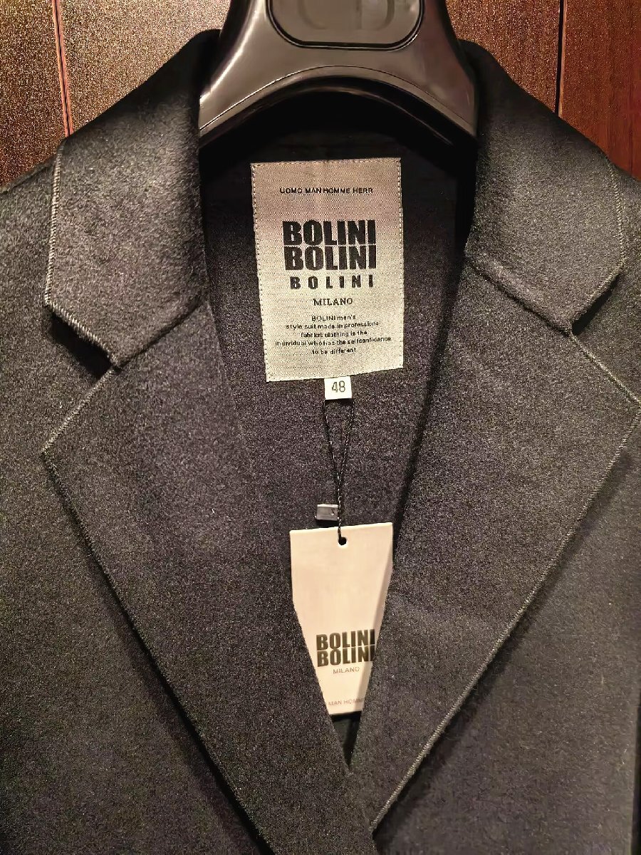 最高級*定価16万◆EU製◆イタリア・ミラノ発*BOLINI*プレミアムライン・高級*両面ウール・チェスターコート*48/L・黒