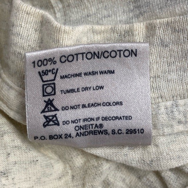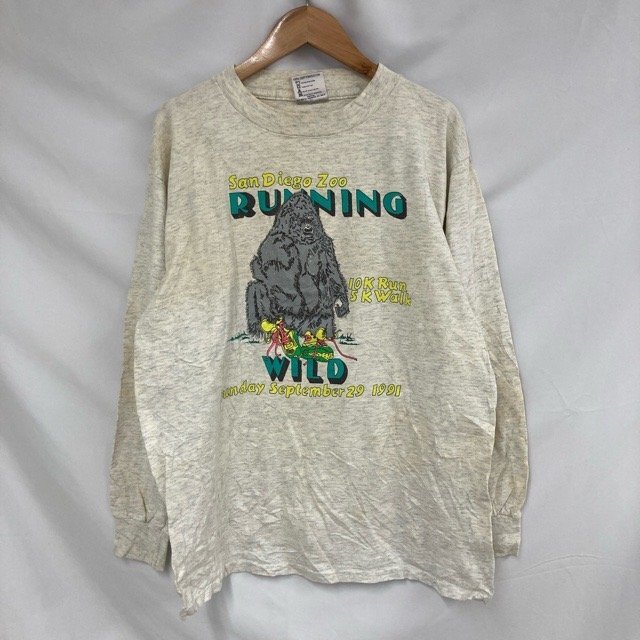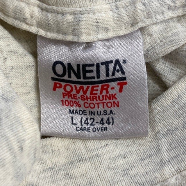 E74 オニータ L アメリカ古着 USA製 プリント コットン 長袖 Tシャツ オートミール ONEITA メンズ
