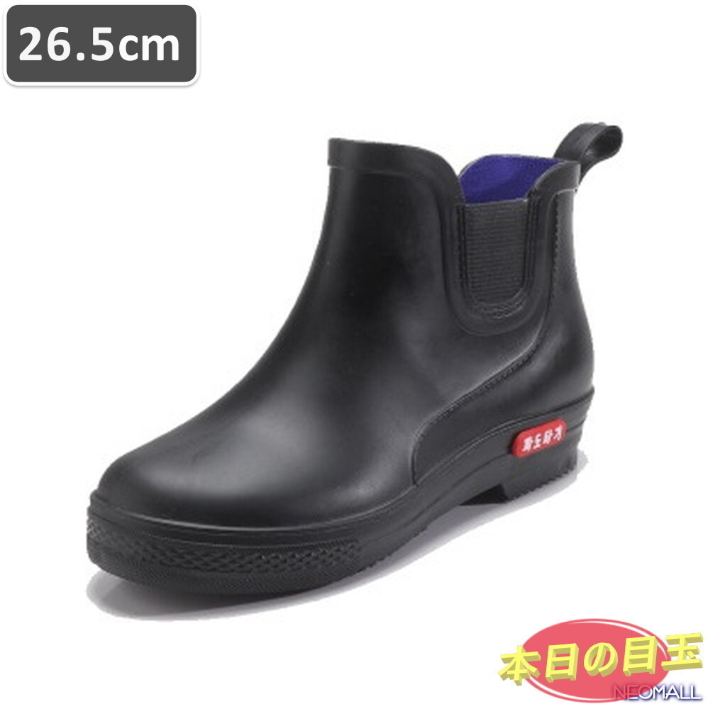 1スタ ☆【486】メンズ レインシューズ ブラック×ブラック 26.5cm オシャレ ショートブーツ シンプル 梅雨 雨 長靴 雨靴 防水