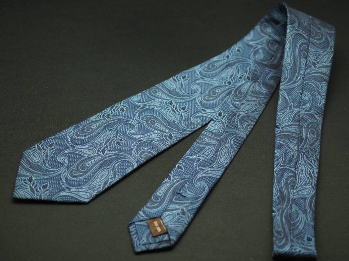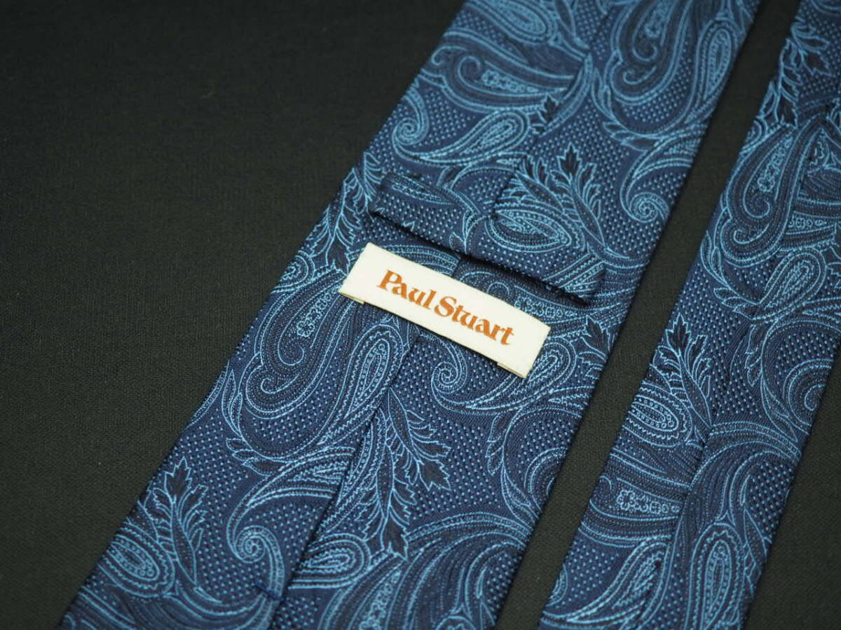 美品【Paul Stuart ポールスチュアート】 G1764 日本製 ペイズリー ネイビー系 SILK ブランド ネクタイ 古着 良品 転売 仕入