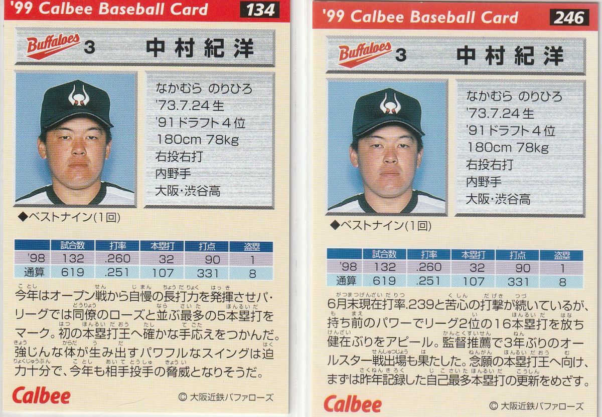 ●1999カルビー【中村 紀洋】レギュラーカード 2種セット No.062&134:近鉄