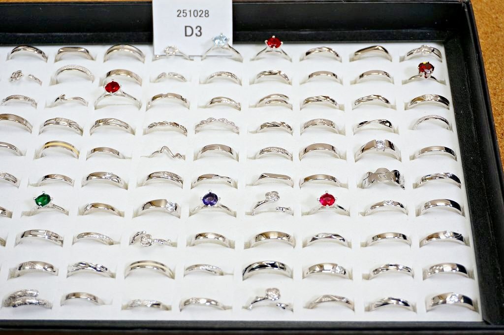 新品 S925刻印あり 昭和レトロ シルバーメッキ指輪 100点セット シルバーメッキ レディースファッションリング 100点セットです。 写真がお譲りする商品の全てになります。 写真のようにS925刻印が入っているものもあります。 (指輪100点全てに刻印が入っている訳ではありませんが、おおよそ2,3割以上の指輪に入っています。 100点のうち1,2点だけ刻印がある指輪があるというのではありません。) サイズ:約16~20mm=約10~22号 材質:シルバーメッキ 個数:100点 ※ケースはおまけとして出品しますので、ケースの不具合に関しては対応はできません。 当店の他の出品商品との同梱料は下記のとおり落札1点につき200円です。 |