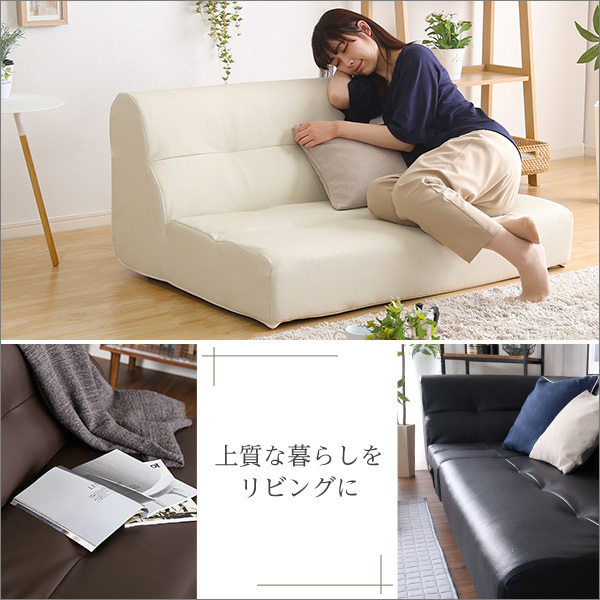 【ポイント】 高級感のあるPVCレザーがワンランク上のお部屋を演出します。 日本製の確かな品質はひとつずつ丁寧に作られた熟練の手によるもの。 座面にはモールド成型とポケットコイルの多層構造で、体にフィットする上質な座り心地と耐久性を実現しました。 ゆったり座れるワイド設計と取替え自由な2種類の脚で、リビングライフの多様性に応える充実のソファです。 |