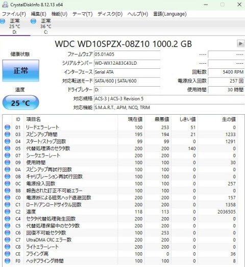 ) CrystalDiskInfo (HDD/SSDの健康状態チェック)
