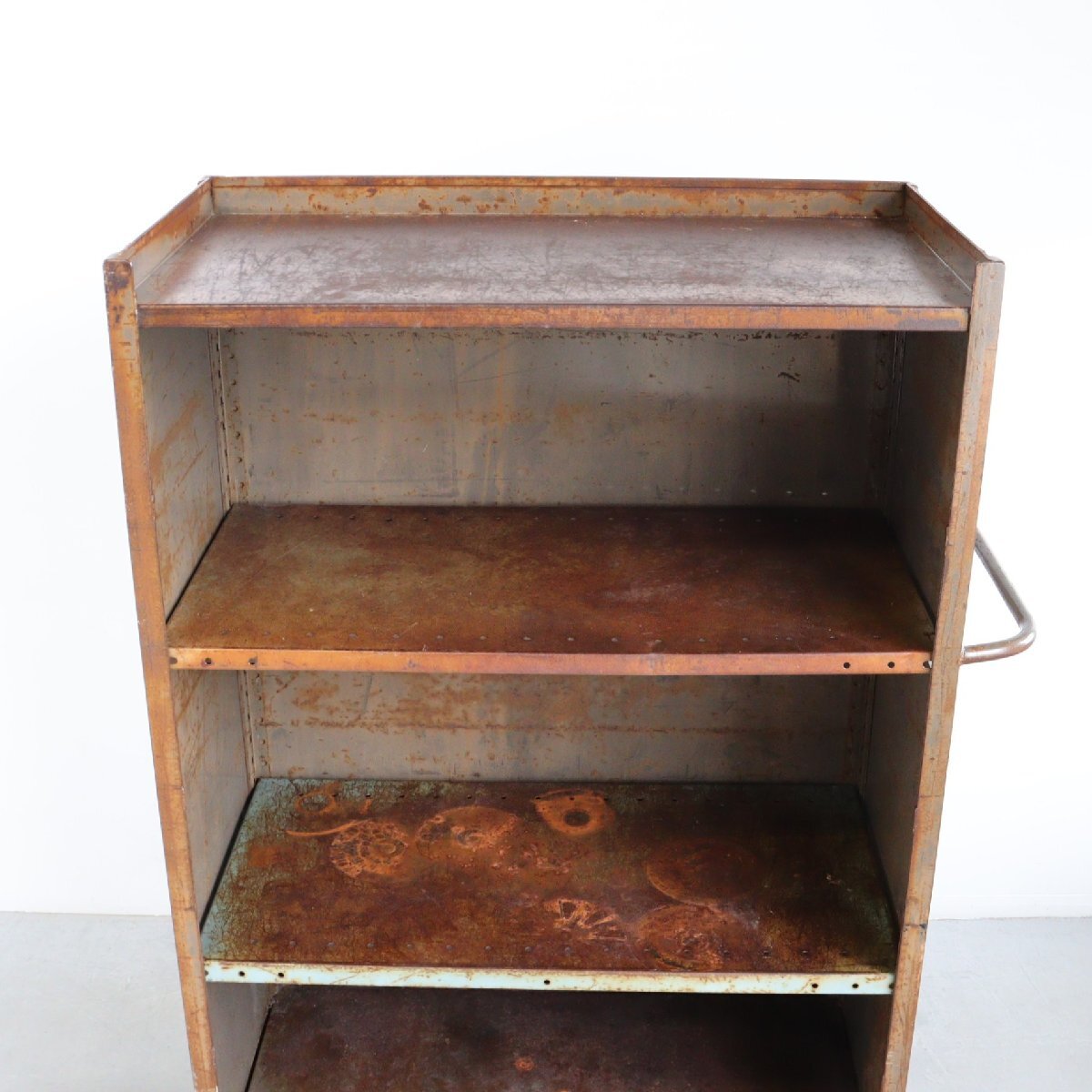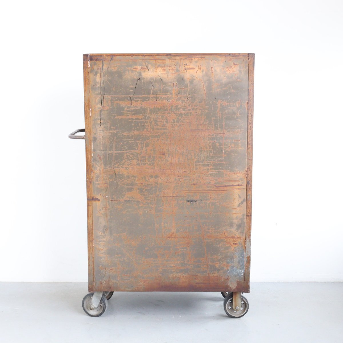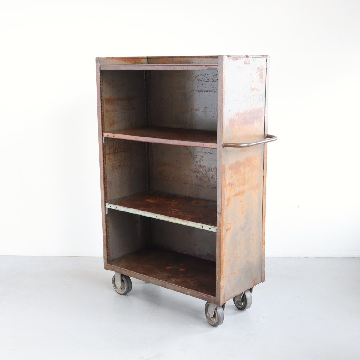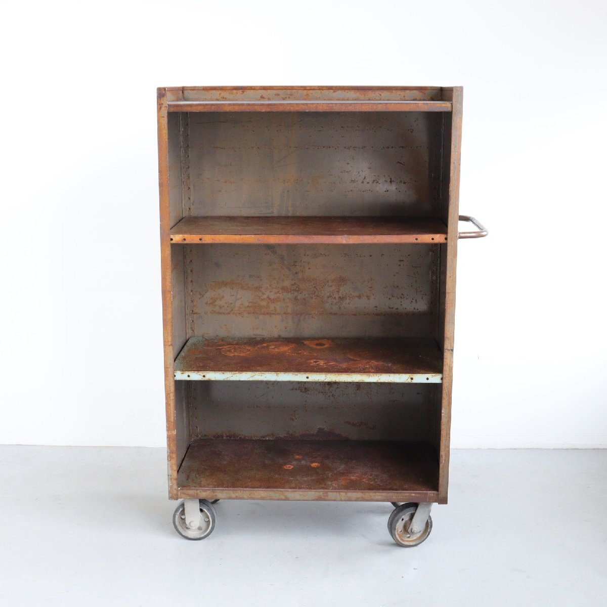 | 商品説明 explanation | 推定1940年代から1950年代の「M.E.CANFIELD.CO」製シェルフワゴンです。 メタル製の頑丈な造りで、上から2段目と3段目が可動式で使い勝手も良く、インダストリアルな雰囲気で今のモノには出せない存在感があります。 ガレージや店舗ディスプレイなどにいかがでしょうか。 |